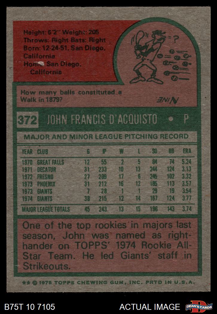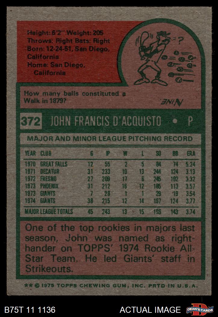 1975 Topps #372 John D'Acquisto 4 - VG/EX