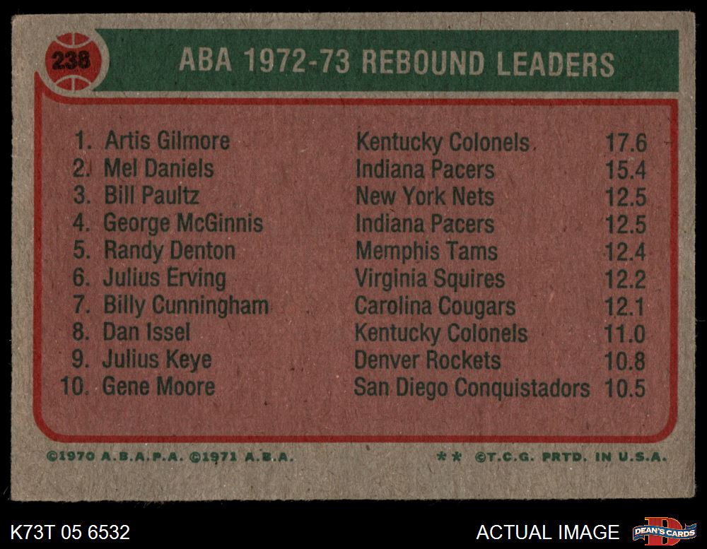 1973 Topps #238 - Artis Gilmore / Mel Daniels / Bill Paultz ABA Rebounds Leaders 3.5 - VG+