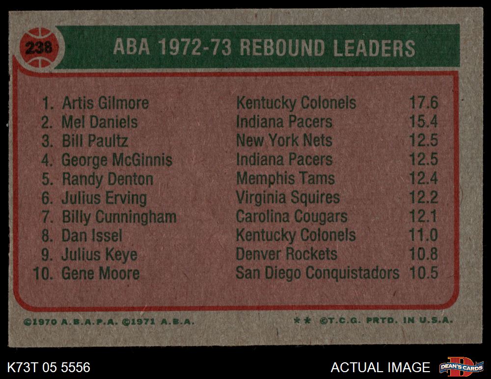 1973 Topps #238 - Artis Gilmore / Mel Daniels / Bill Paultz ABA Rebounds Leaders 4 - VG/EX