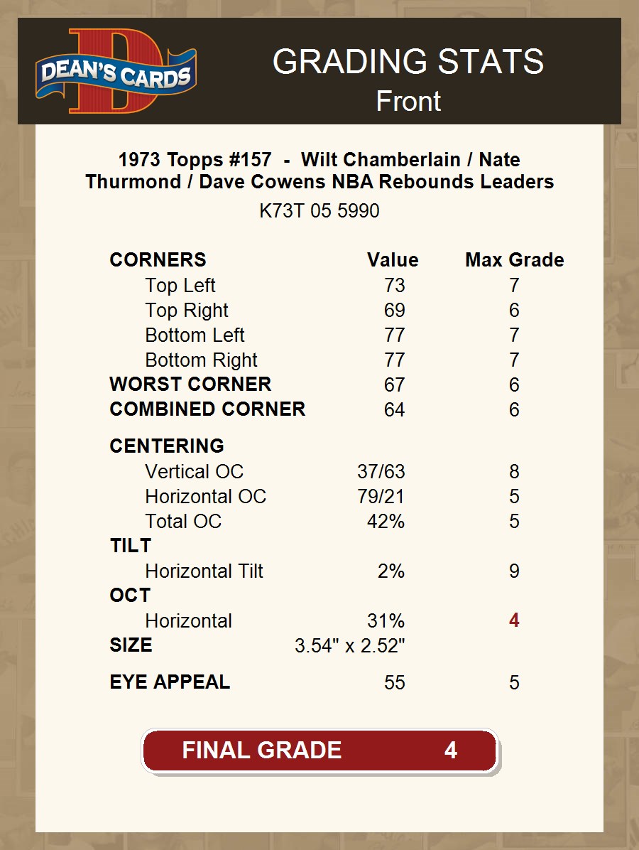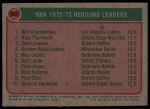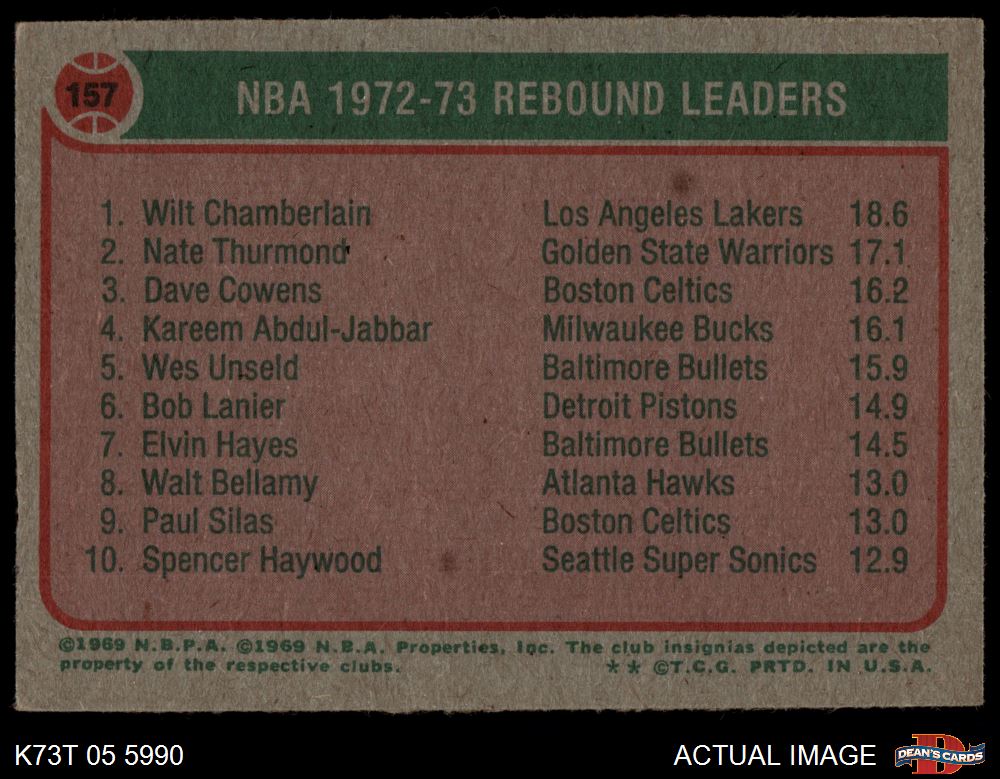 1973 Topps #157 - Wilt Chamberlain / Nate Thurmond / Dave Cowens NBA Rebounds Leaders 4 - VG/EX