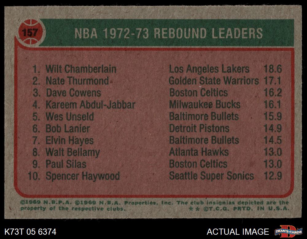 1973 Topps #157 - Wilt Chamberlain / Nate Thurmond / Dave Cowens NBA Rebounds Leaders 8 - NM/MT