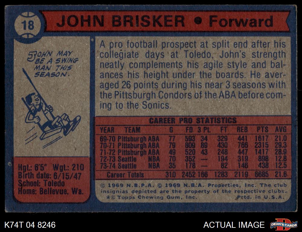 1974 Topps #18 John Brisker 4.5 - VG/EX+