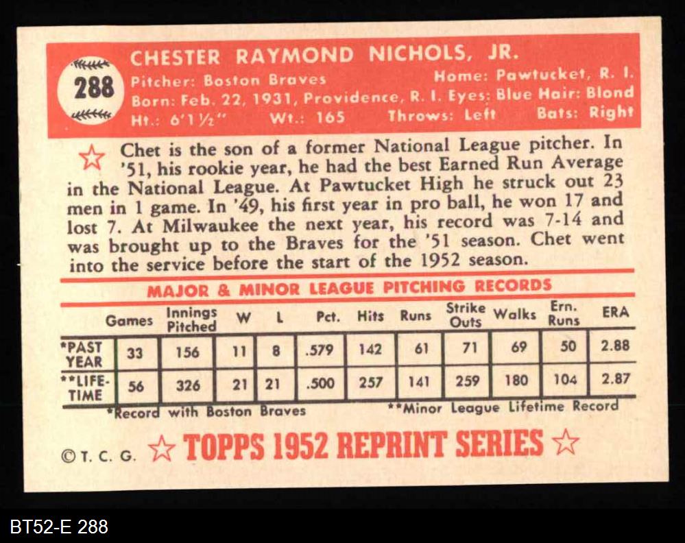 1952 Topps REPRINT #288 Chet Nichols 8 - NM/MT