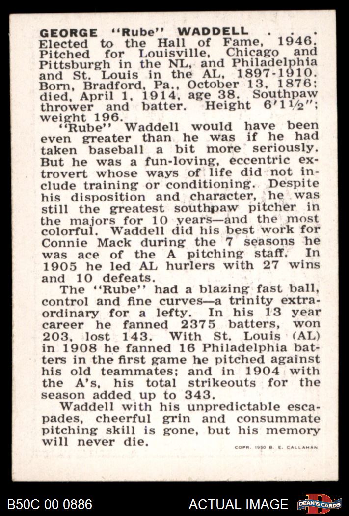 1950 Callahan Hall of Fame Rube Waddell 7 - NM