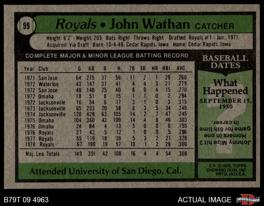 1979 Topps #99 John Wathan 6 - EX/MT