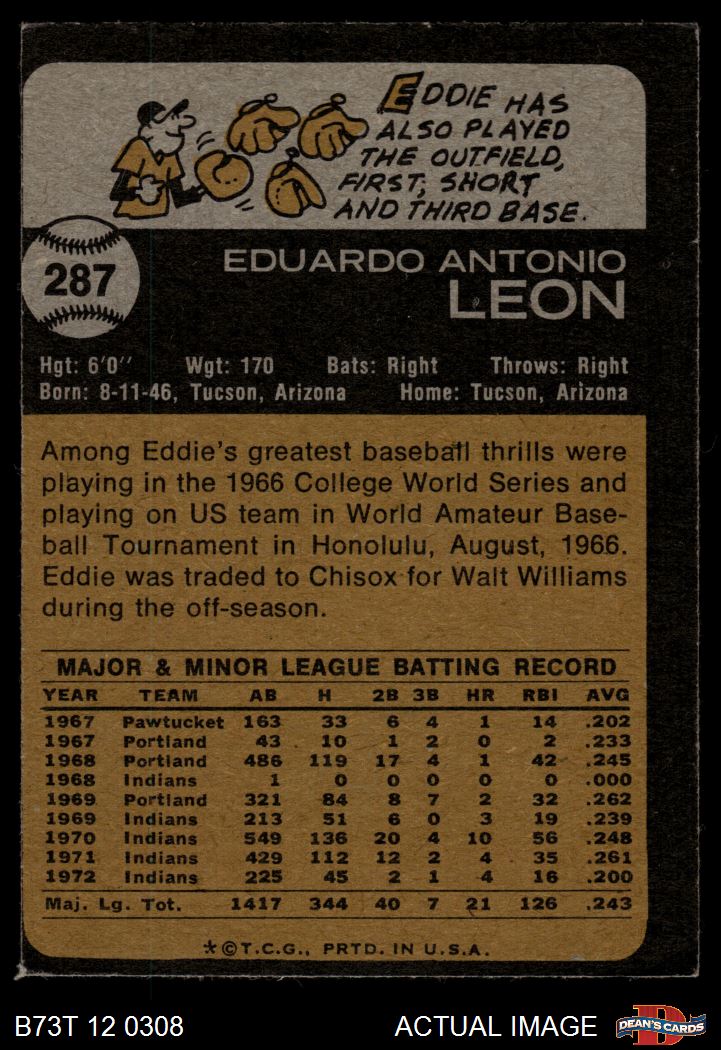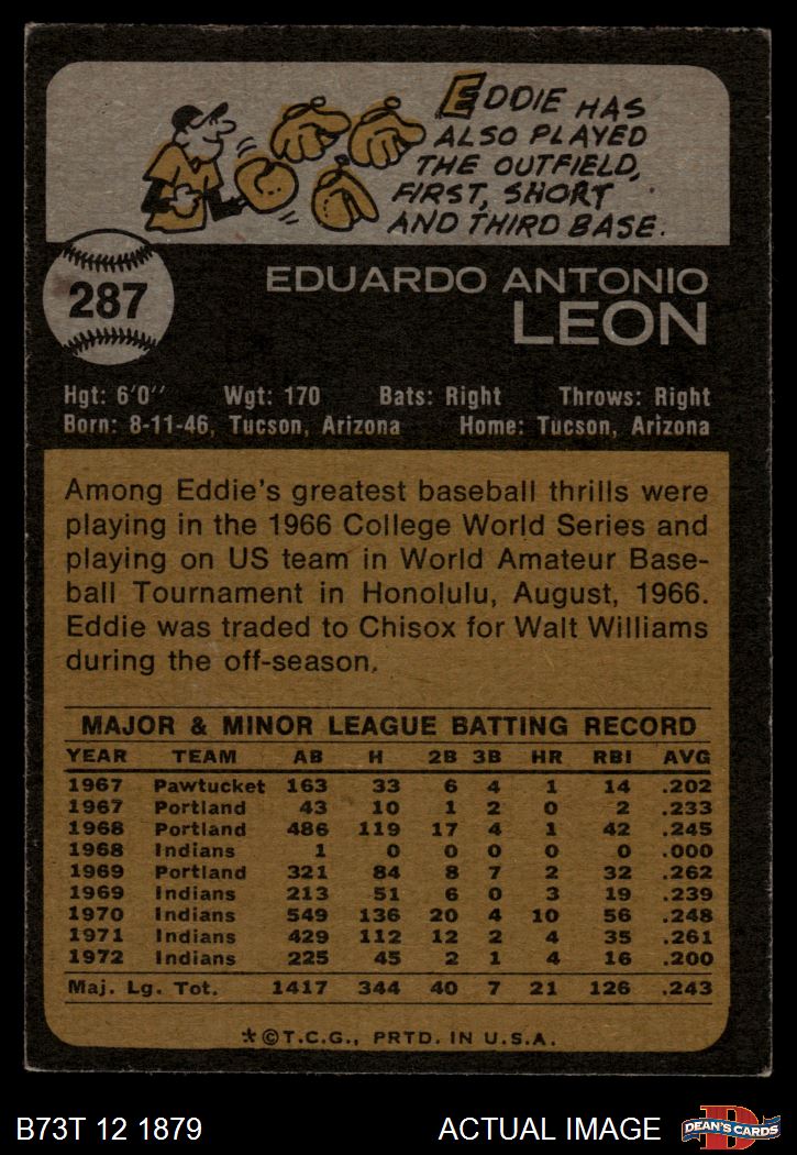 1973 Topps #287 Eddie Leon 3 - VG
