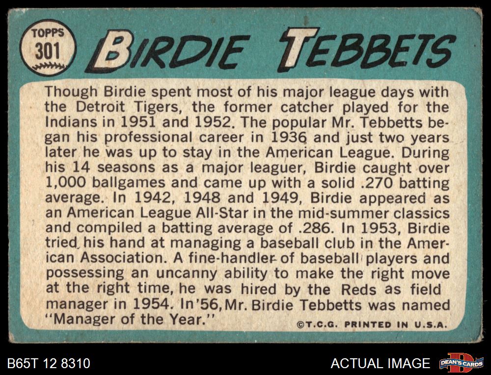 1965 Topps #301 Birdie Tebbetts