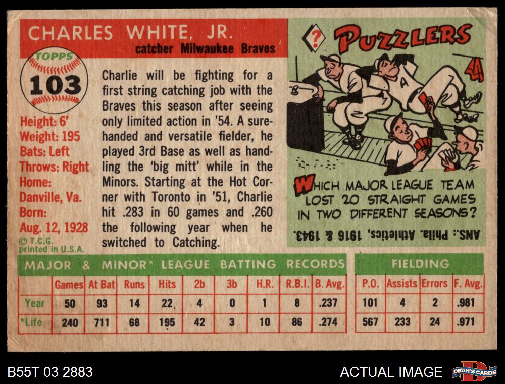 1955 Topps #103 Charlie White 4.5 - VG/EX+