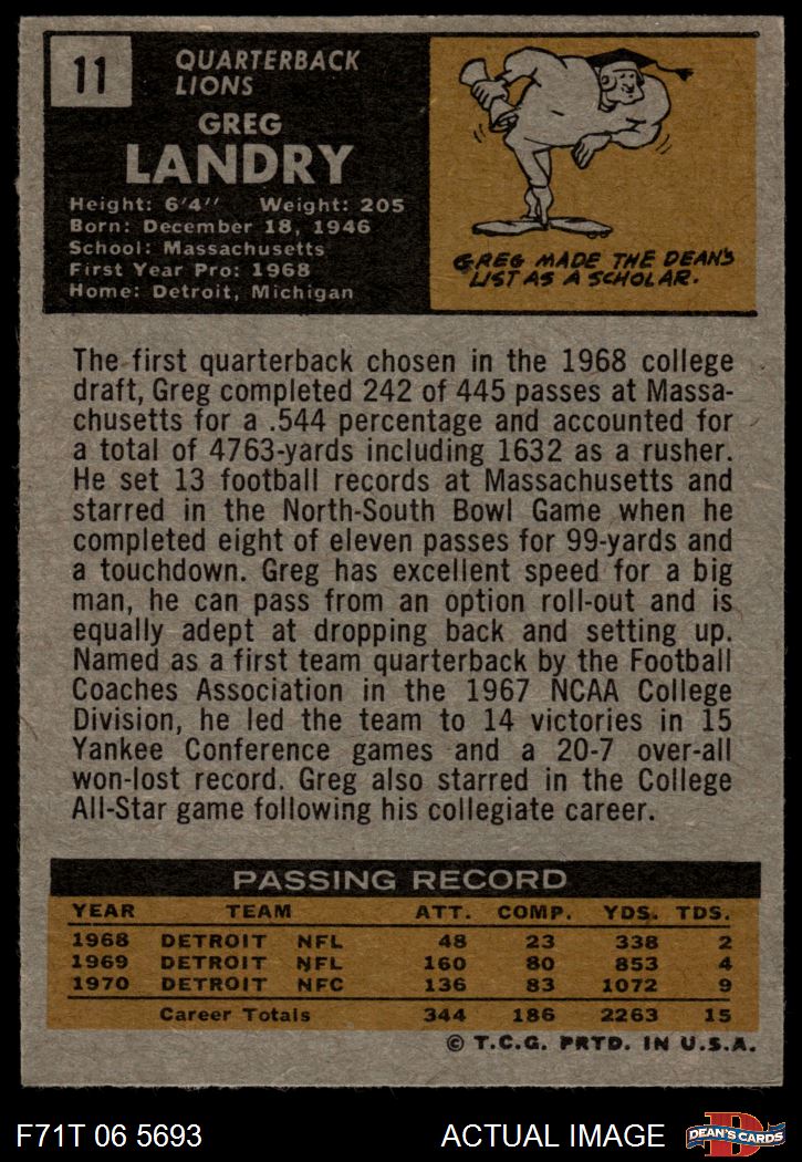 1971 Topps Football Cards (2,973 available)1971 Topps Lions (125 available)