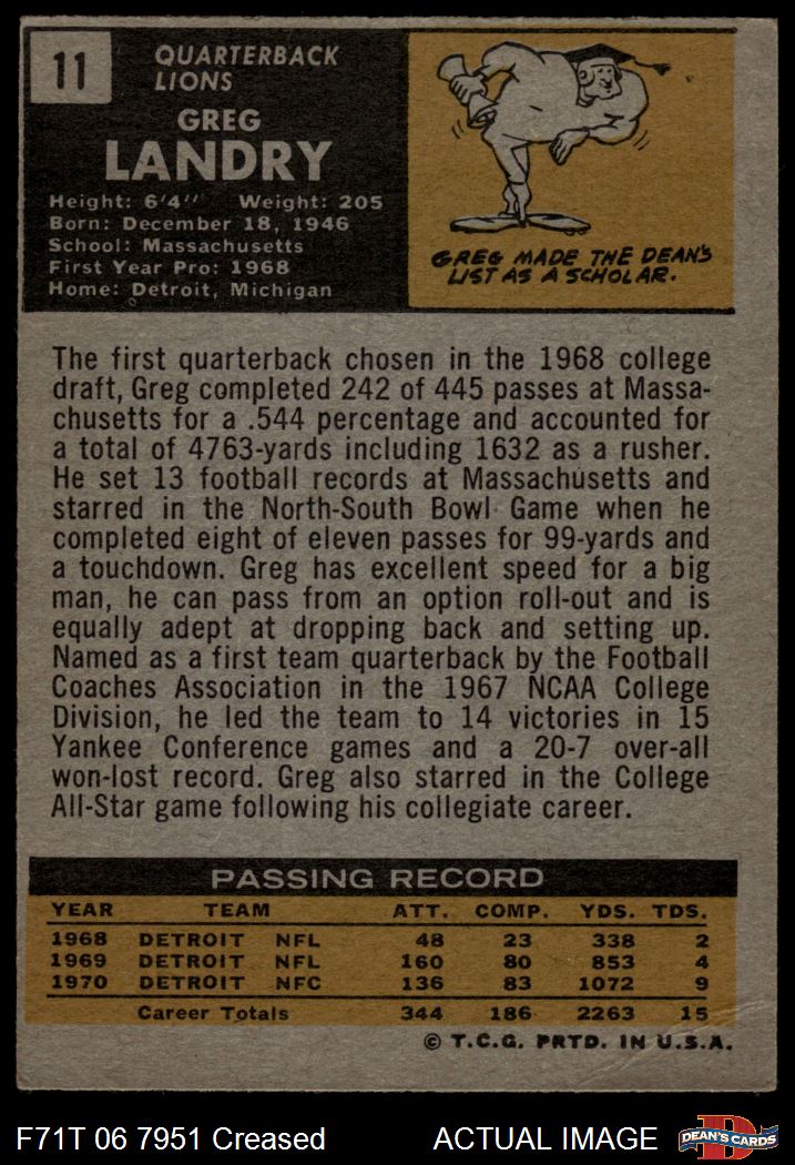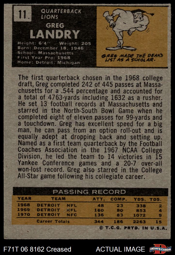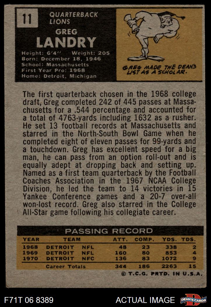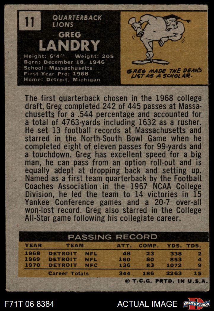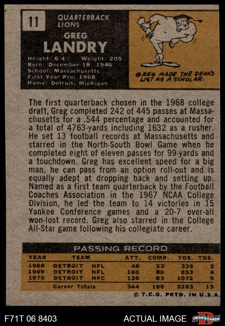 1971 Topps #11 Greg Landry 3 - VG