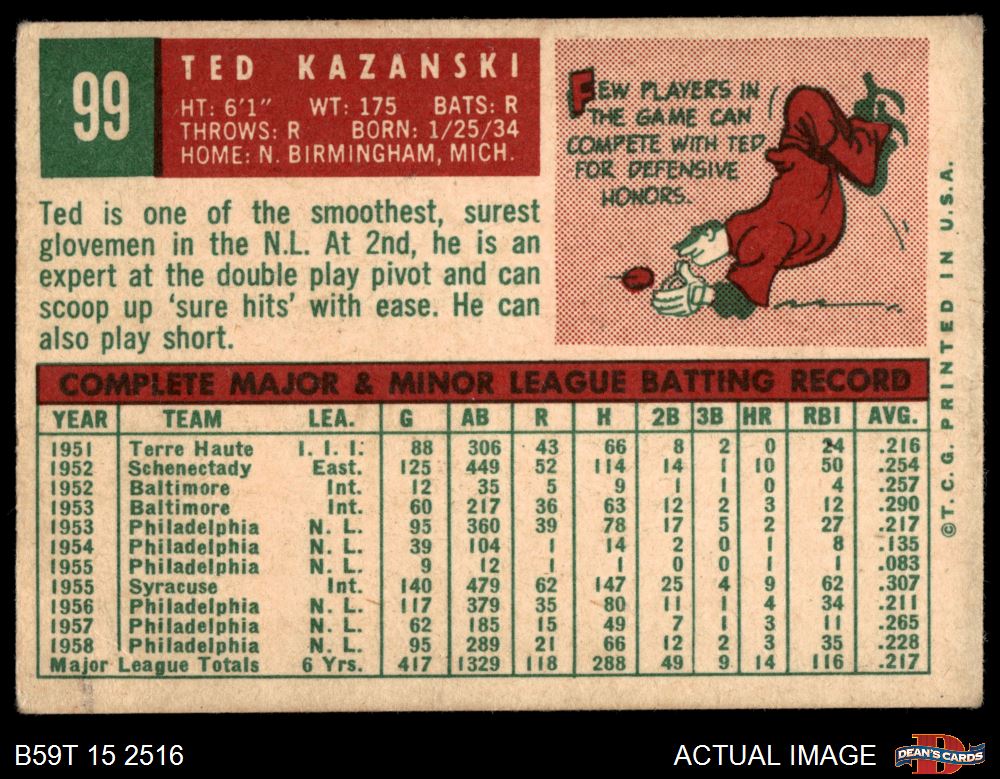 1959 Topps #99 Ted Kazanski