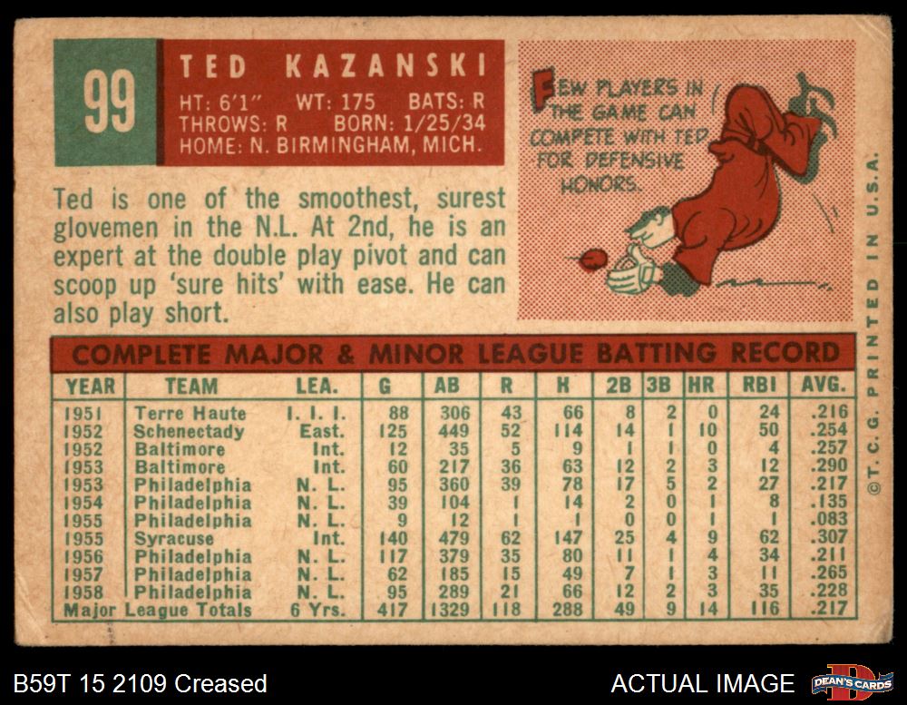 1959 Topps #99 Ted Kazanski 2 - GOOD