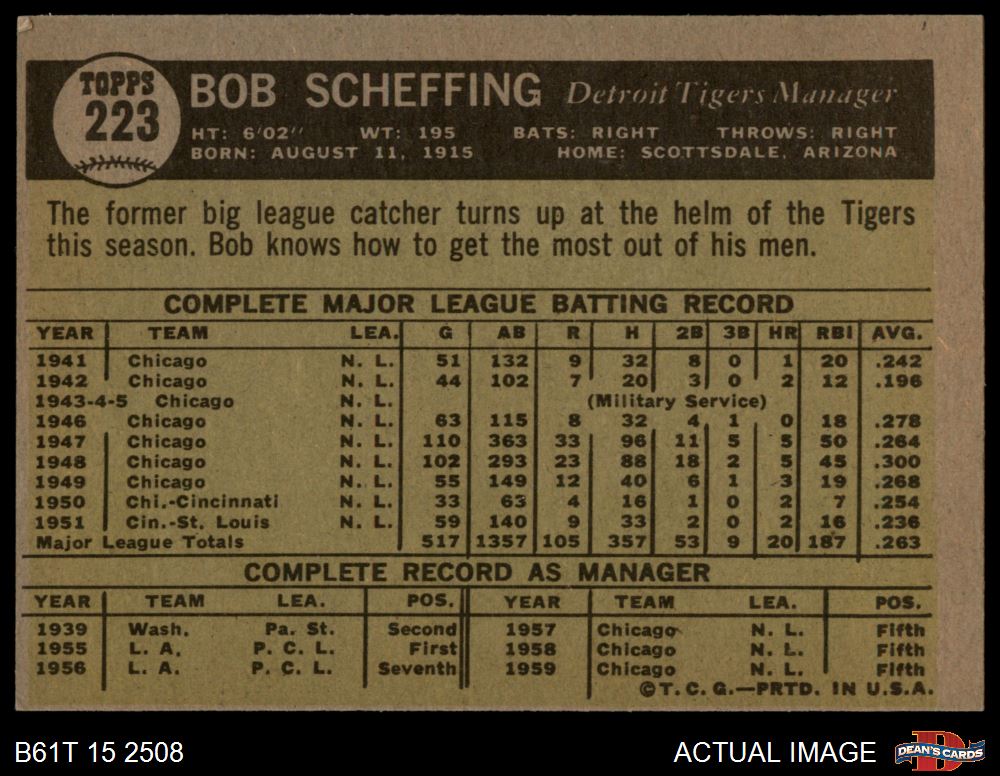 1961 Topps #223 Bob Scheffing 4 - VG/EX