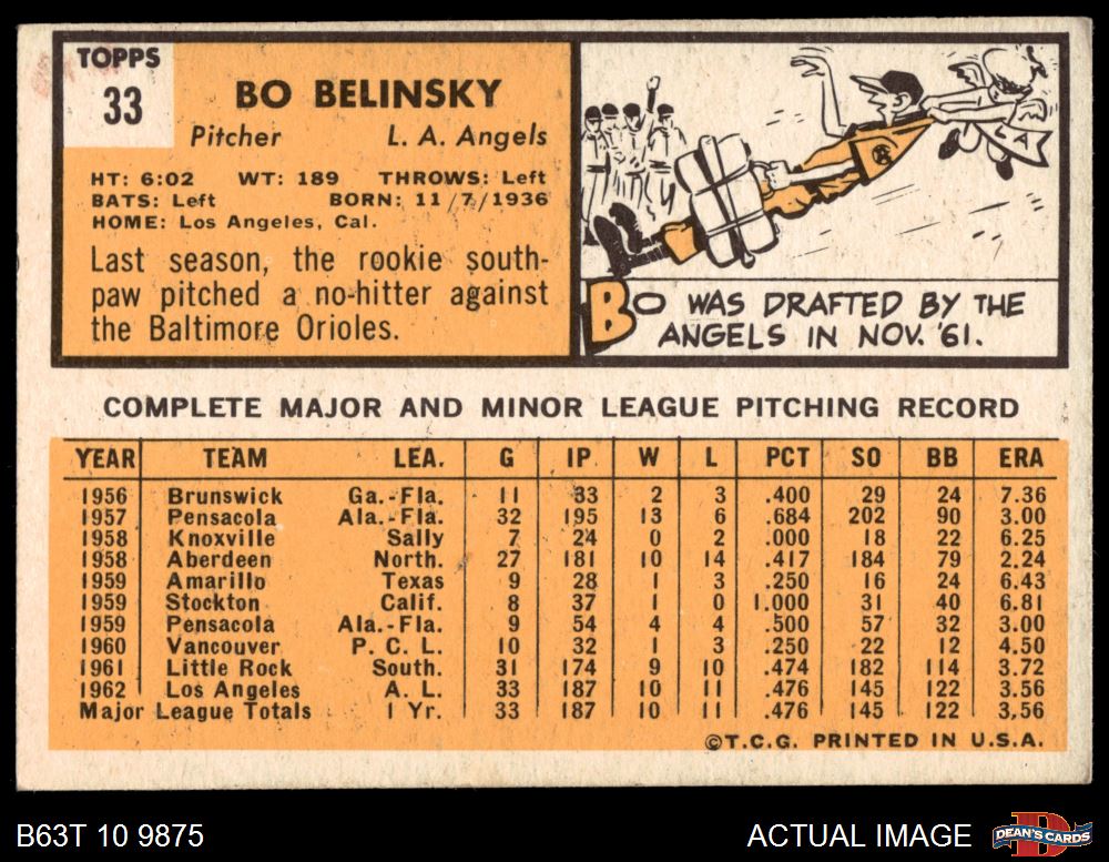 1963 Topps #33 Bo Belinsky 4 - VG/EX