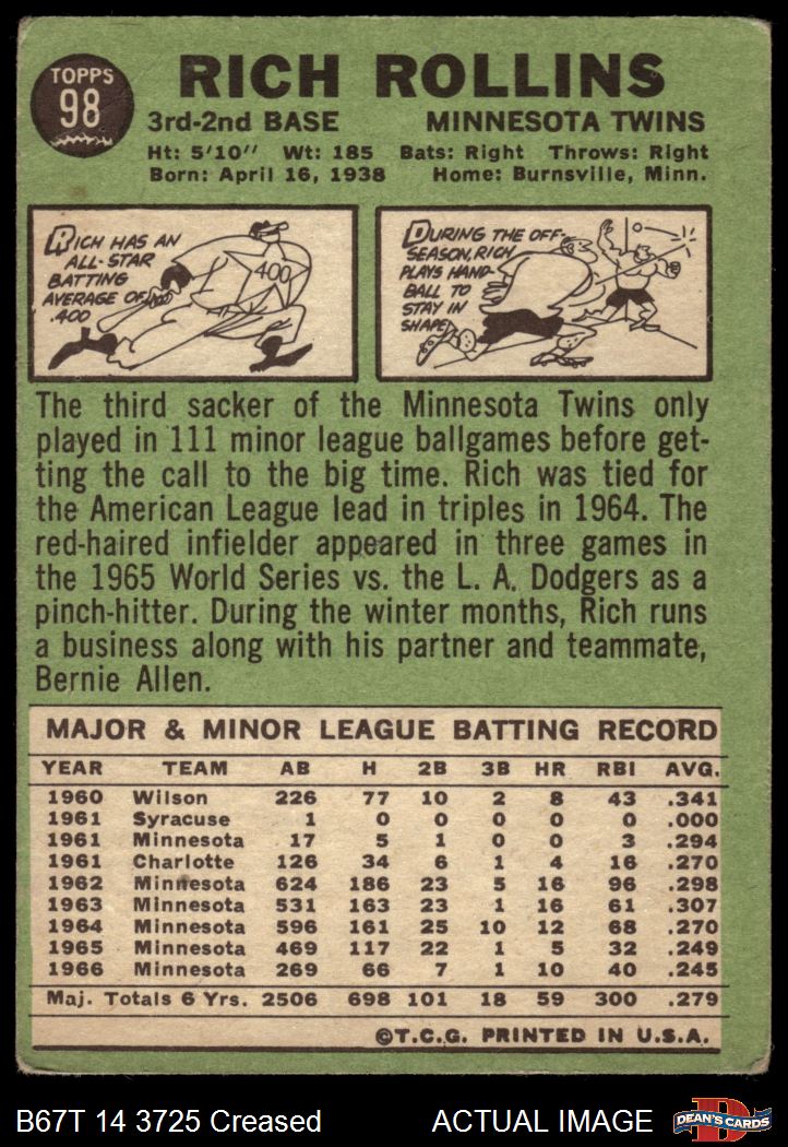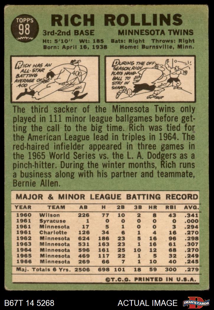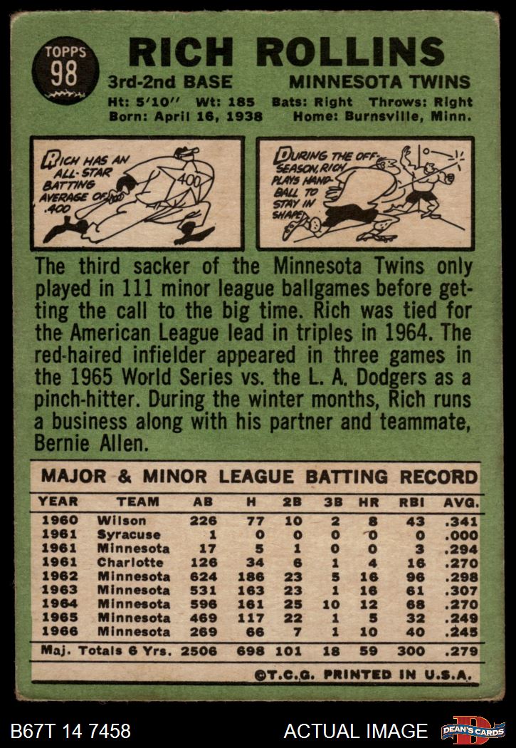 1967 Topps #98 Red or Black Line on Glove Label Rich Rollins 1.5 - FAIR