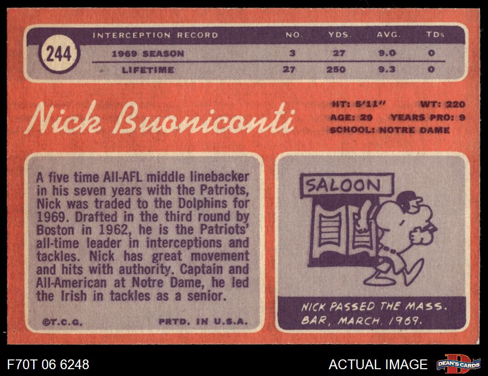 1970 Topps #244 Nick Buoniconti 4 - VG/EX