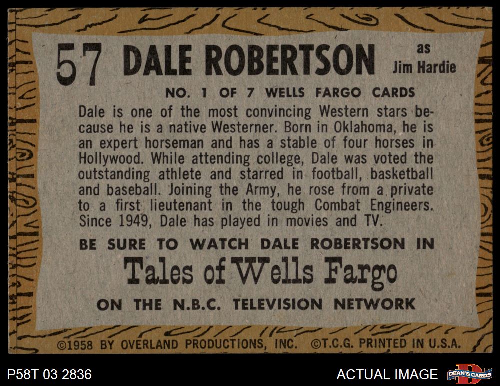 1958 Topps TV Westerns #57 Dale Robertson 4 - VG/EX