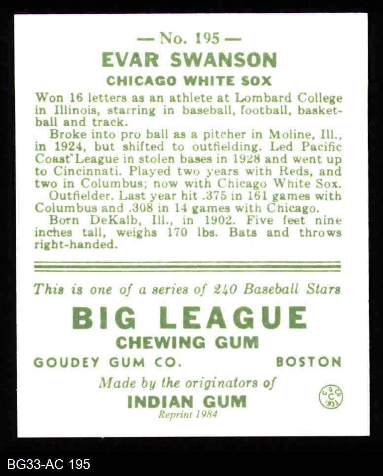 1933 Goudey Reprint #195 Evar Swanson 8 - NM/MT