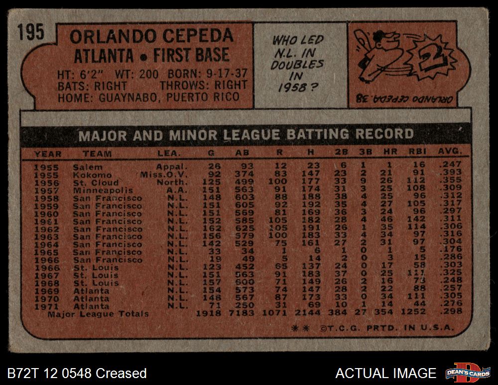 1972 Topps #195 Orlando Cepeda 1 - POOR