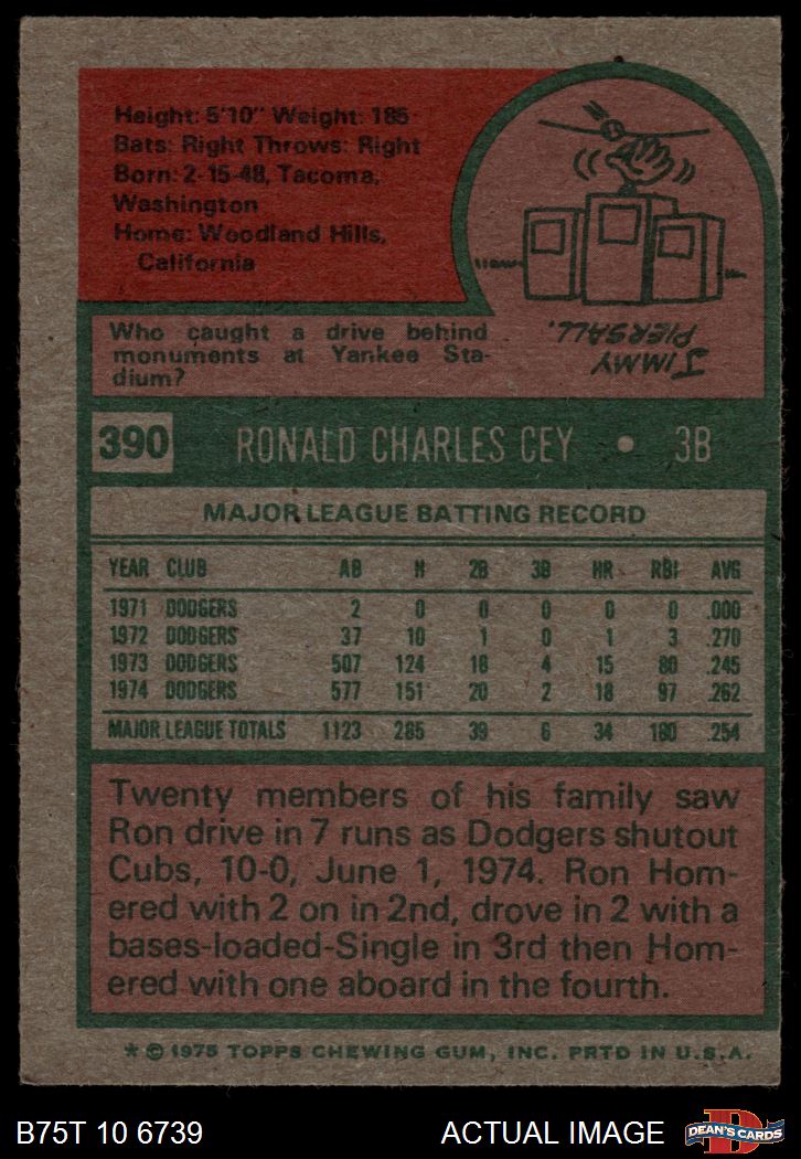 1975 Topps #390 Ron Cey 3 - VG