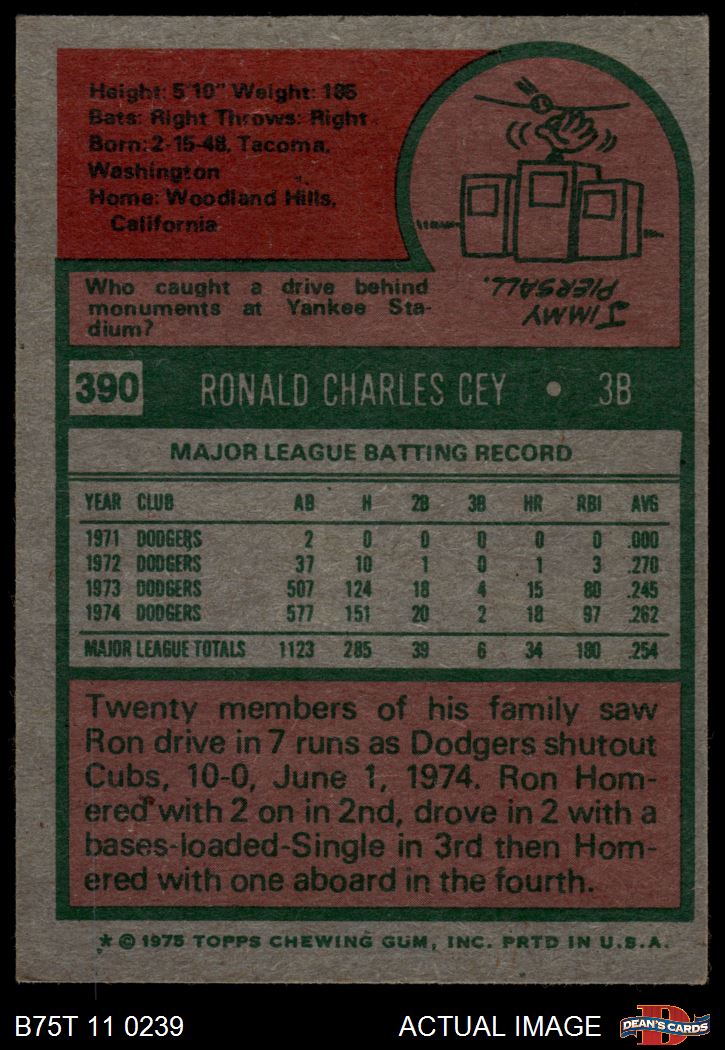 1975 Topps #390 Ron Cey 4.5 - VG/EX+
