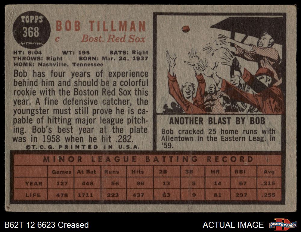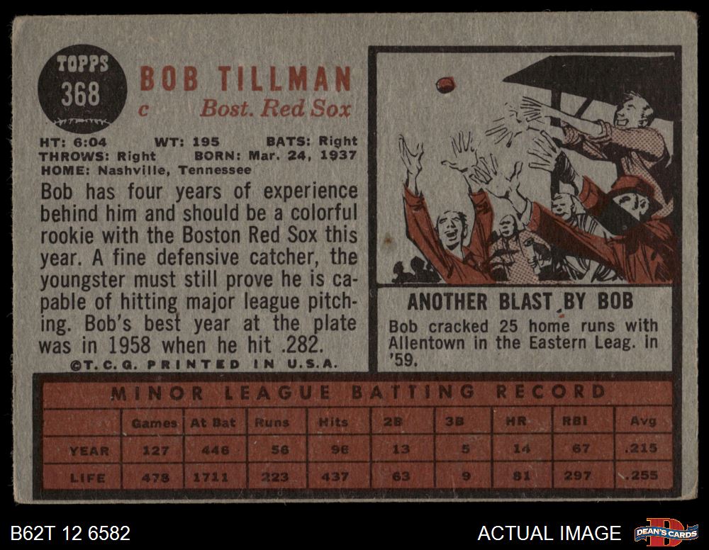 1962 Topps #368 Bob Tillman 1 - POOR