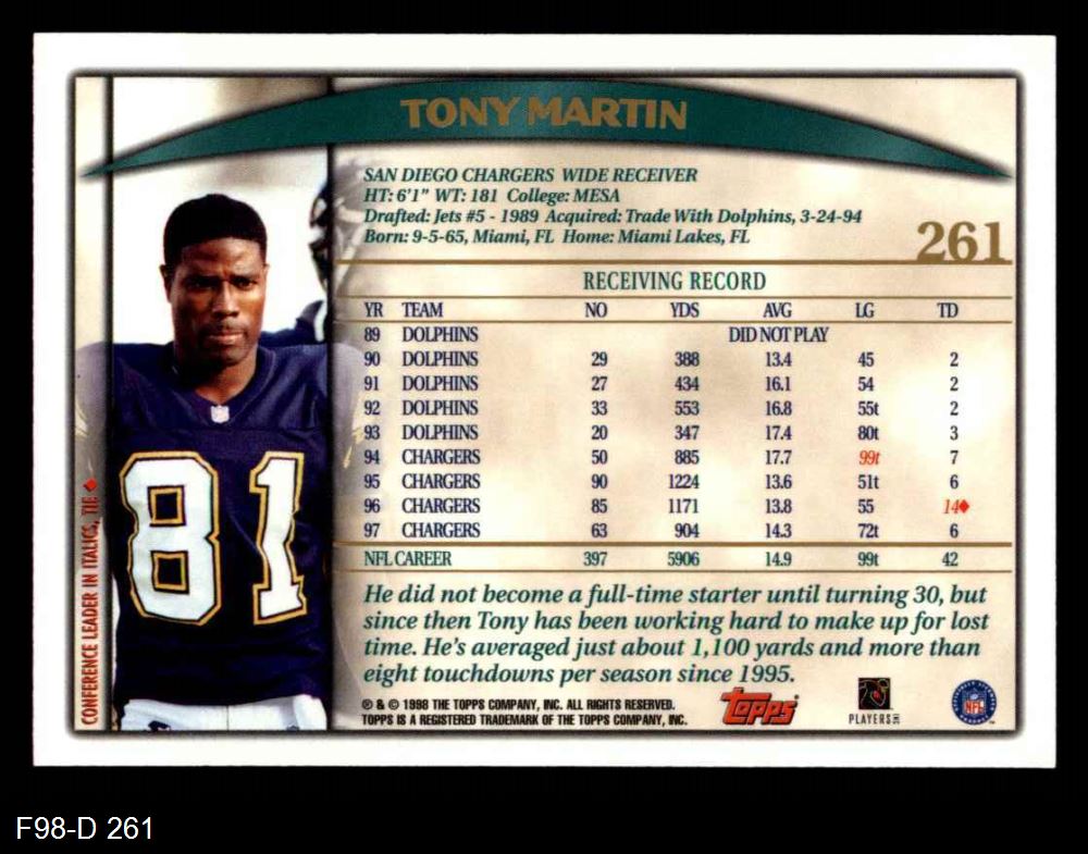 1998 Topps #261 Tony Martin 8 - NM/MT