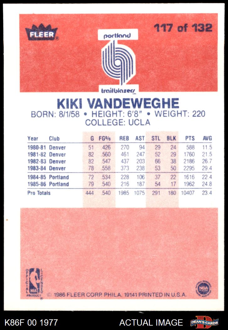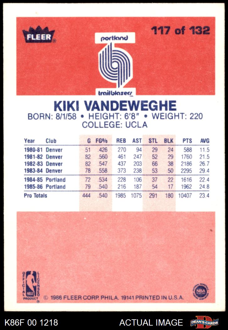 1986-87 Fleer Basketball Cards (208 available)1986 Fleer Trail Blazers (2 available)