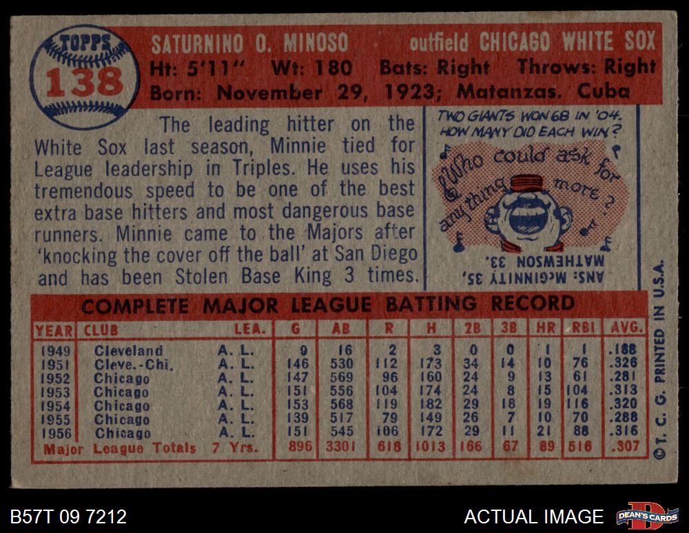 1957 Topps #138 Minnie Minoso