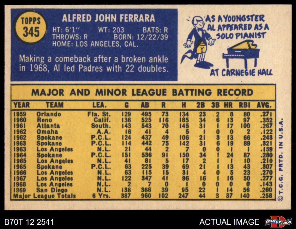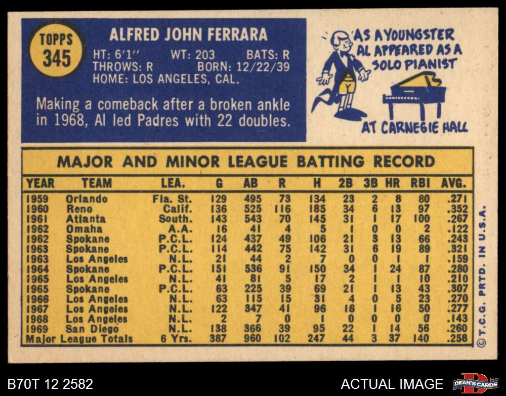 1970 Topps #345 Al Ferrara 8 - NM/MT