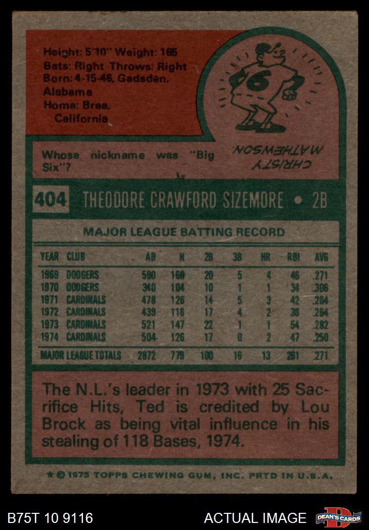 1975 Topps #404 Ted Sizemore 1.5 - FAIR