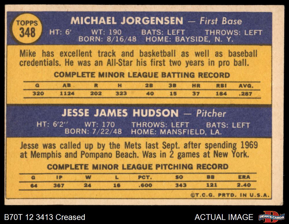 1970 Topps #348 - Mike Jorgensen / Jesse Hudson Mets Rookies 3 - VG