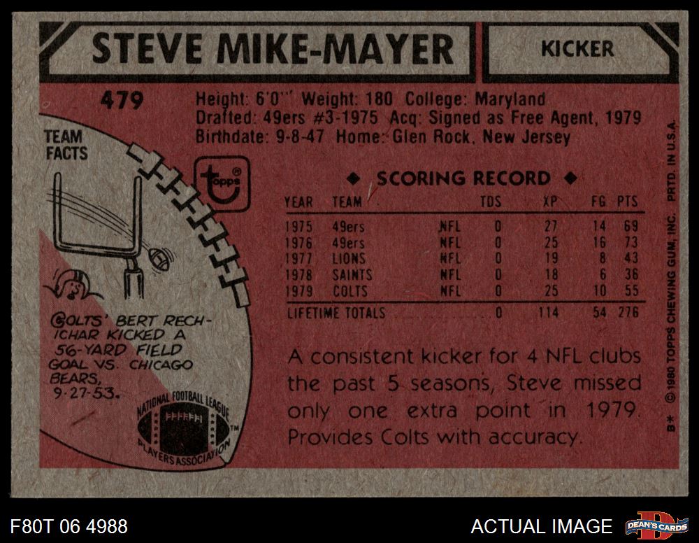 1980 Topps #479 Steve Mike-Mayer 5 - EX