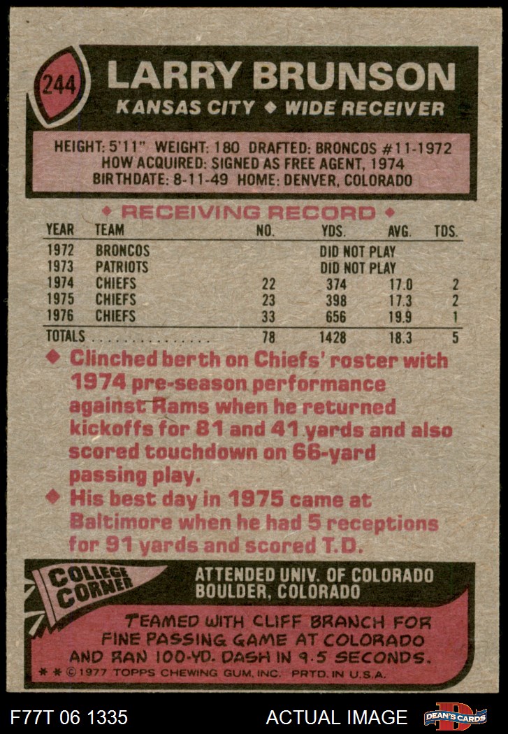 1977 Topps #244 Larry Brunson 4 - VG/EX
