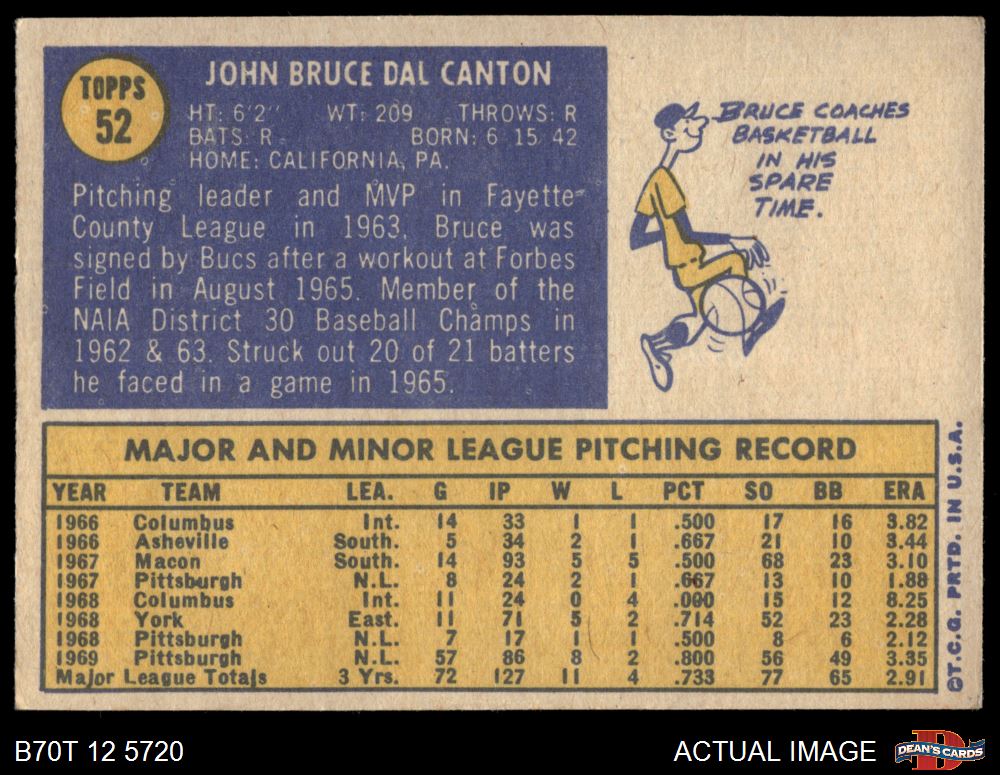 1970 Topps #52 Bruce Dal Canton 5 - EX