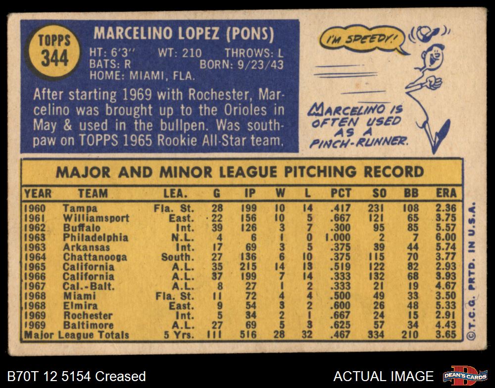 1970 Topps #344 Marcelino Lopez 3 - VG