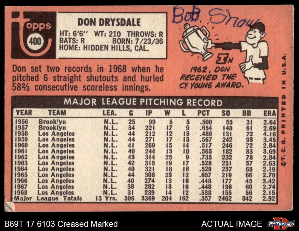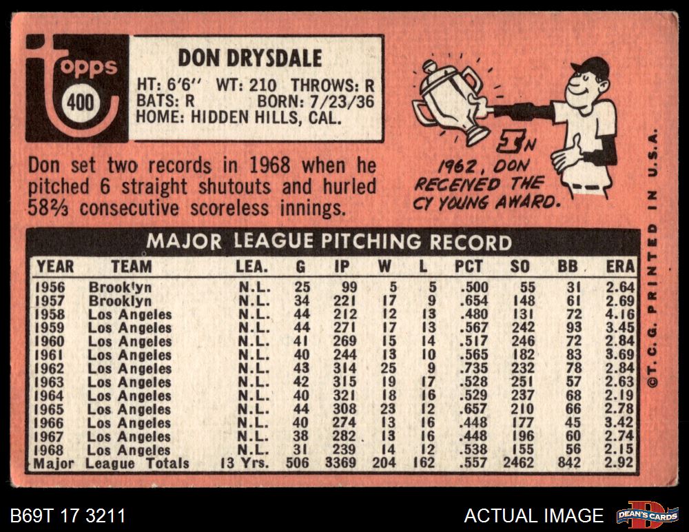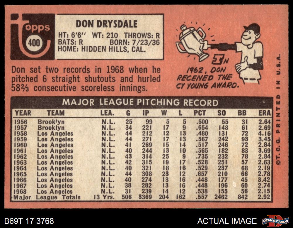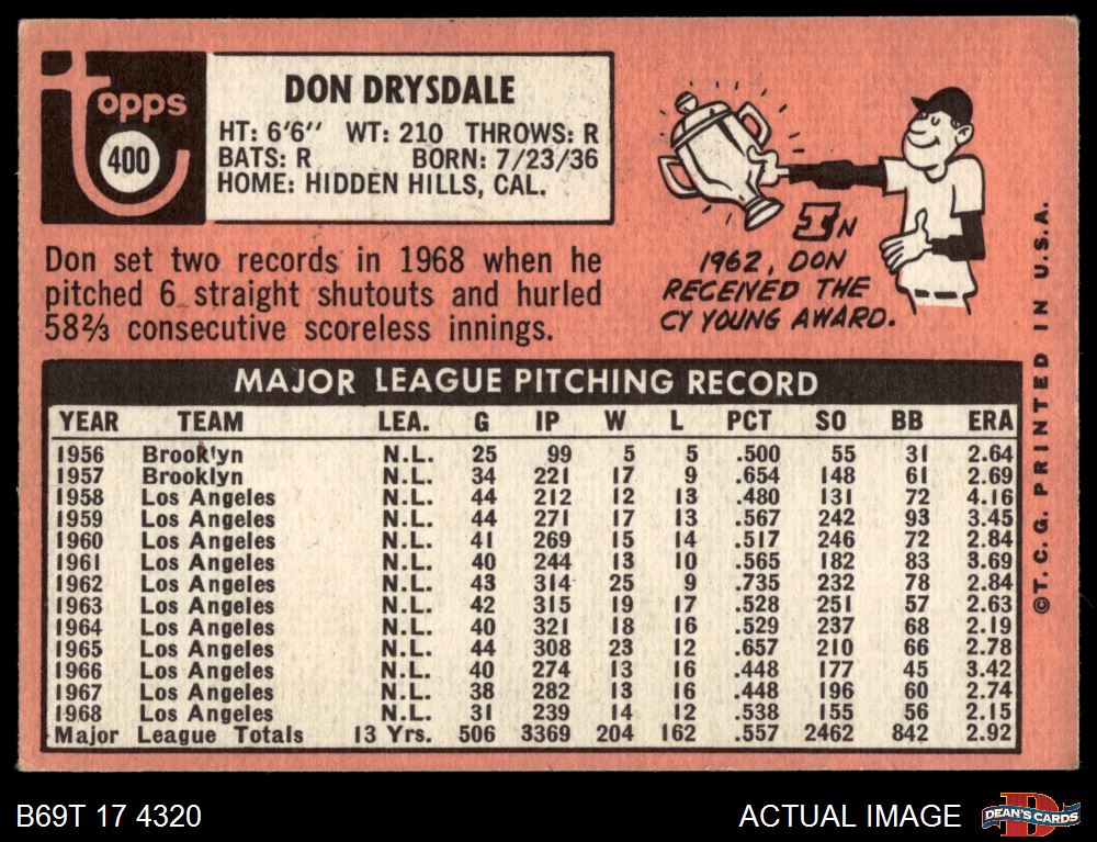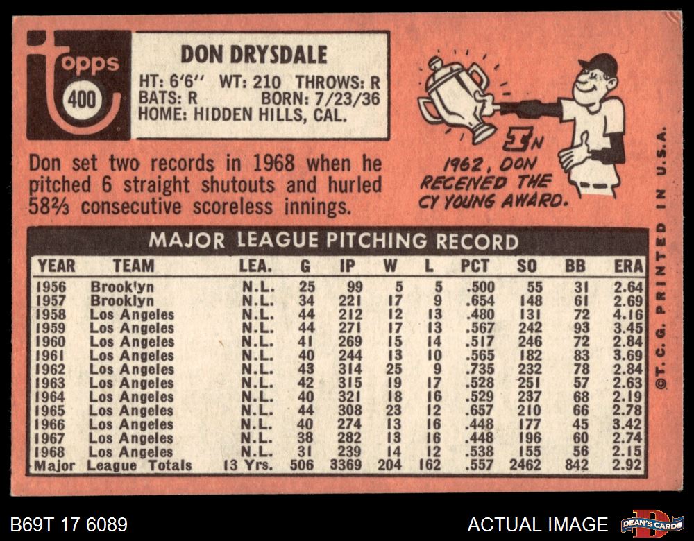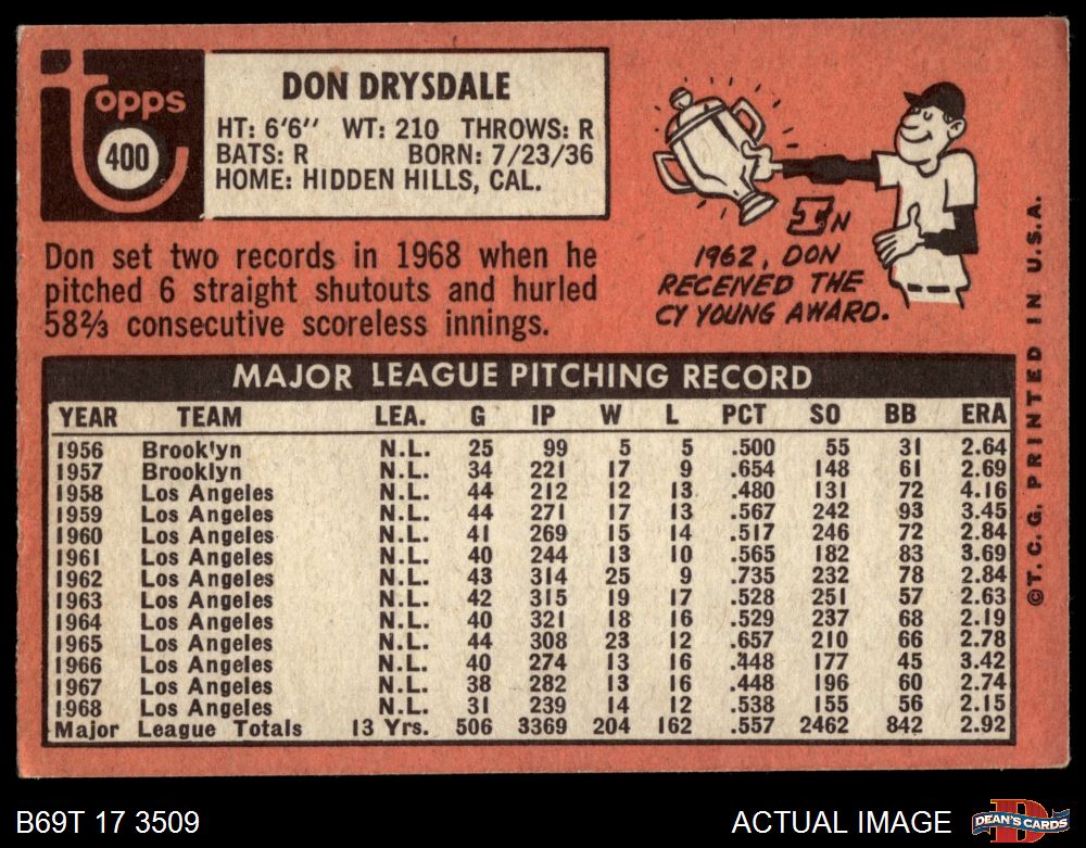 1969 Topps #400 Don Drysdale
