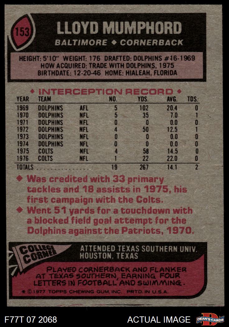 1977 Topps #153 Lloyd Mumphord 5 - EX