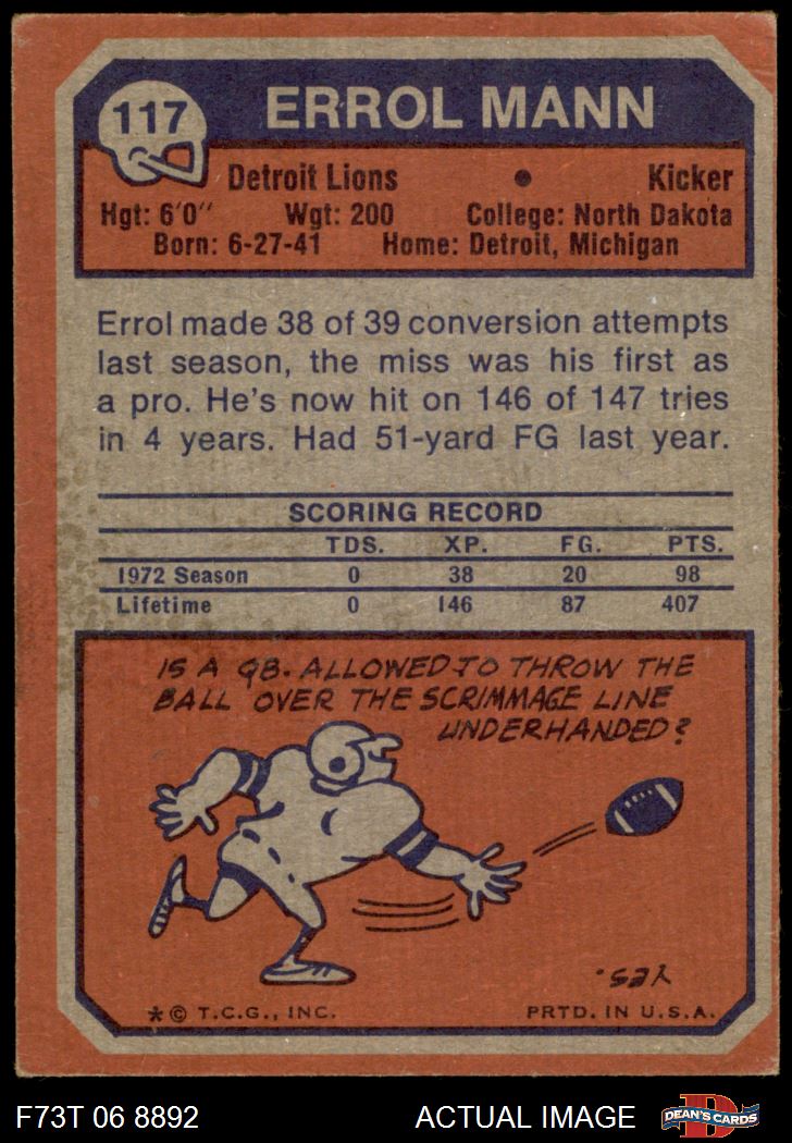 1973 Topps #117 Errol Mann 3.5 - VG+