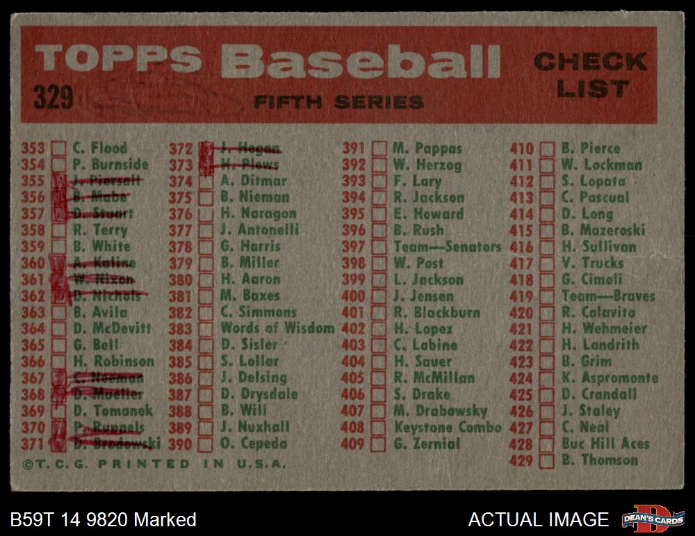 1959 Topps #329 Tigers Team Checklist 1 - POOR