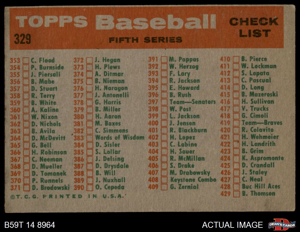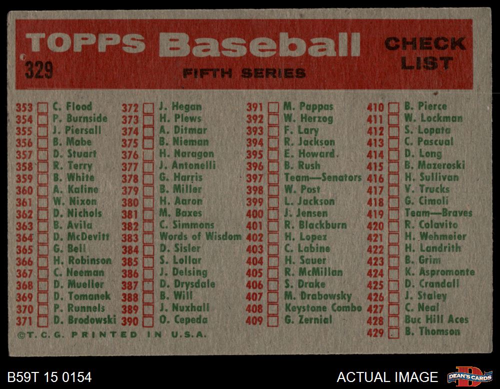 1959 Topps #329 Tigers Team Checklist 4 - VG/EX