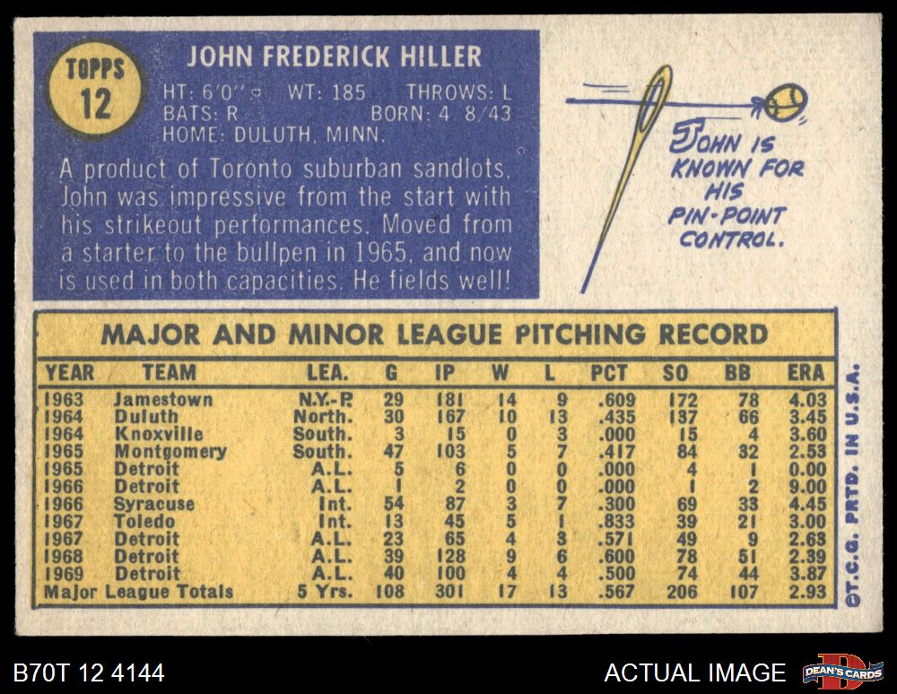 1970 Topps #12 John Hiller 5 - EX