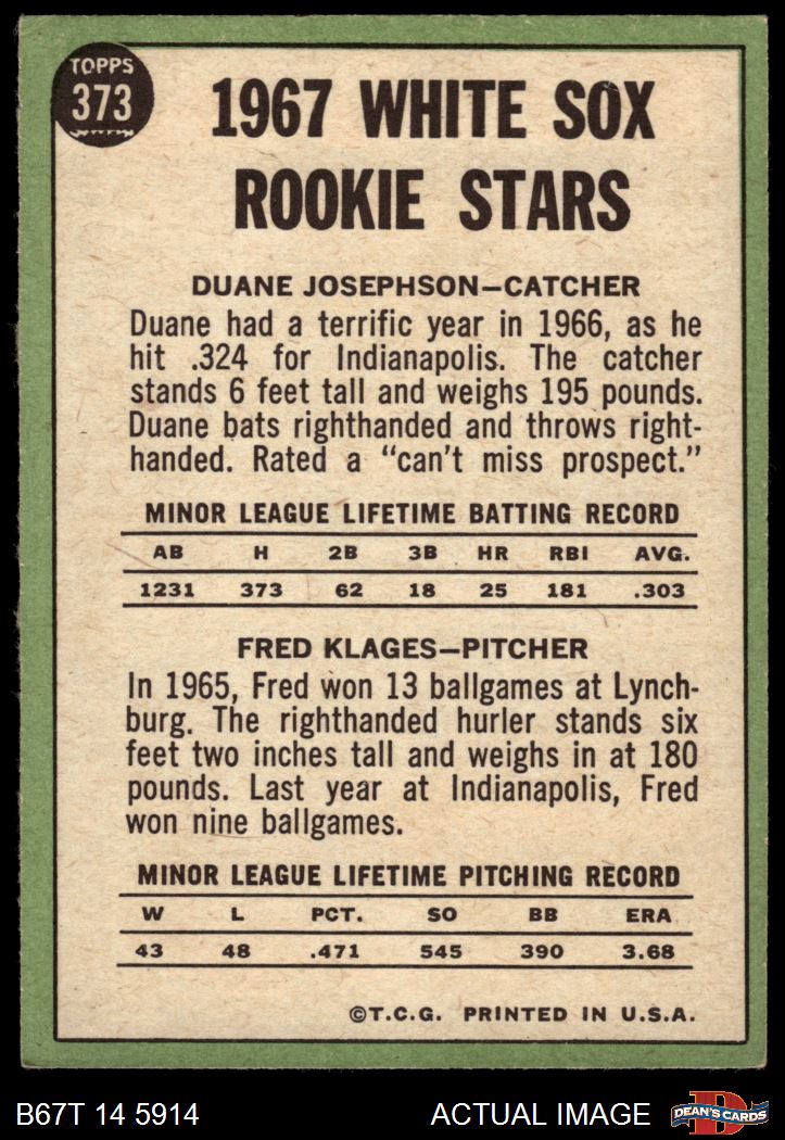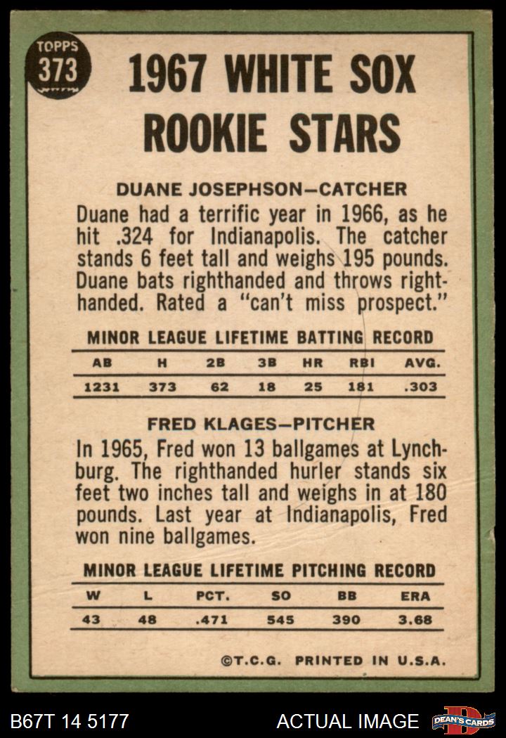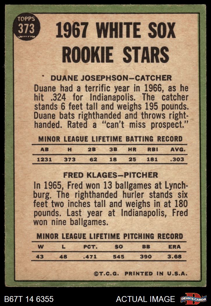 1967 Topps #373 - Duane Josephson / Fred Klages White Sox Rookies 2 - GOOD