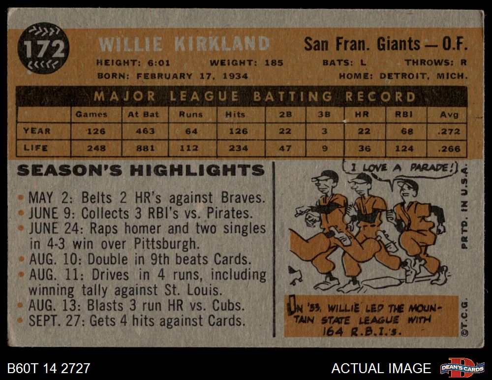 1960 Topps #172 Willie Kirkland