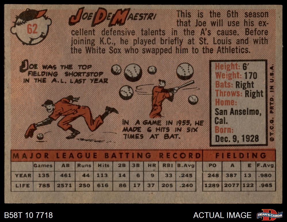 1958 Topps #62 Joe DeMaestri