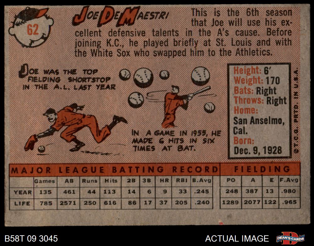 1958 Topps #62 Joe DeMaestri 5 - EX
