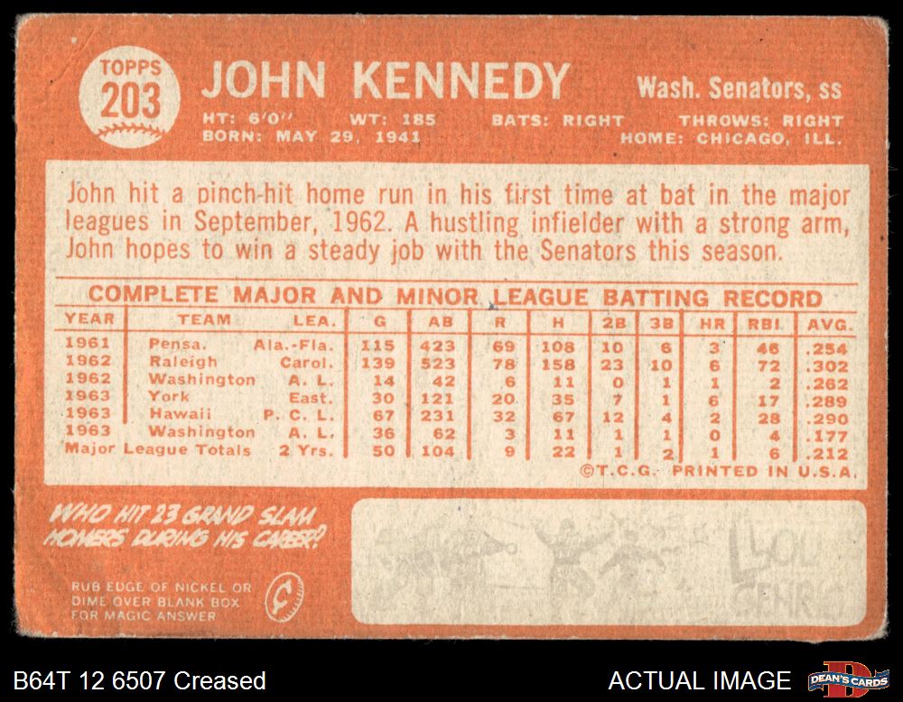 1964 Topps #203 John Kennedy 1 - POOR