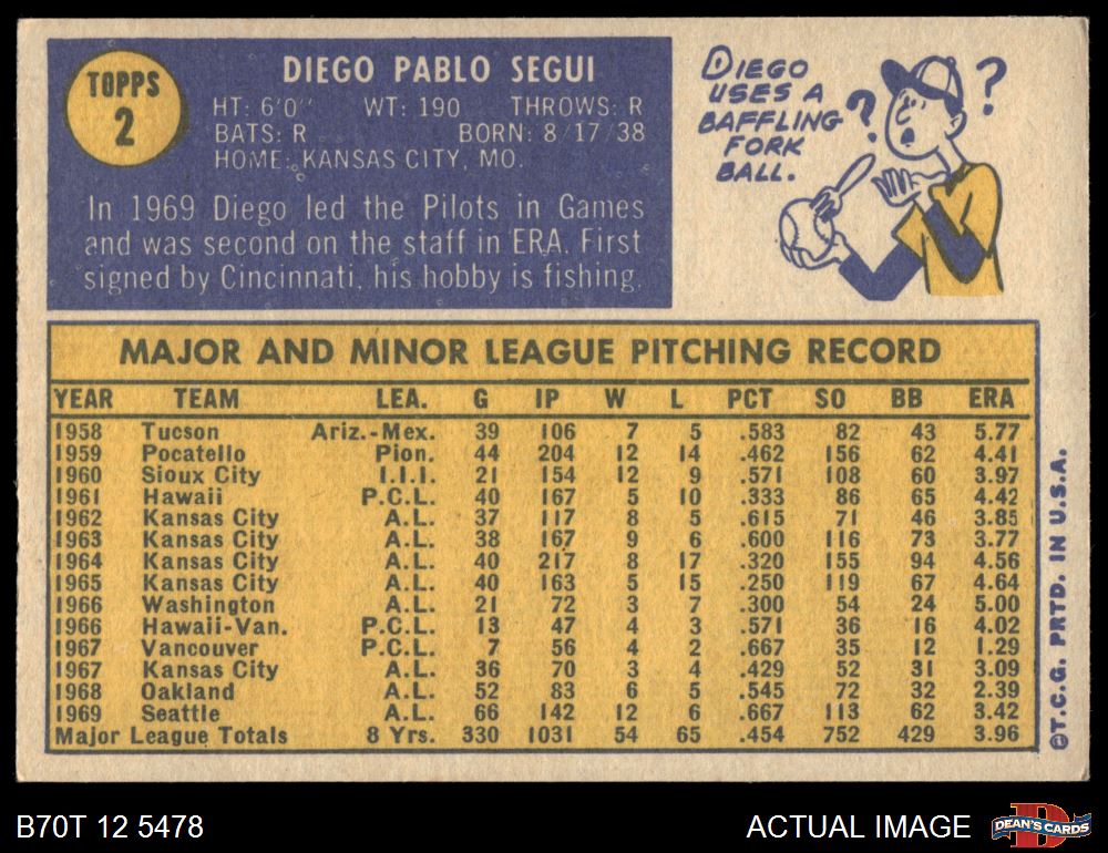 1970 Topps #2 Diego Segui 5.5 - EX+