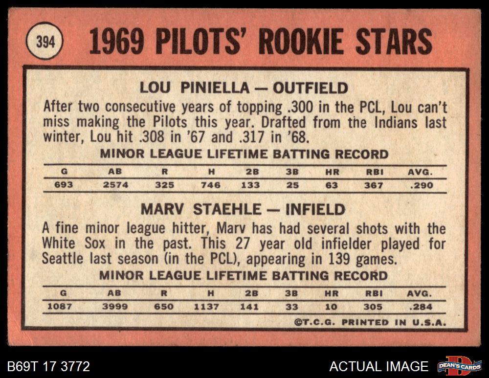1969 Topps #394 - Lou Piniella / Marv Staehle Pilots Rookies 3.5 - VG+