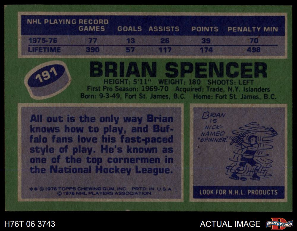 1976 Topps #191 Brian Spencer 6.5 - EX/MT+